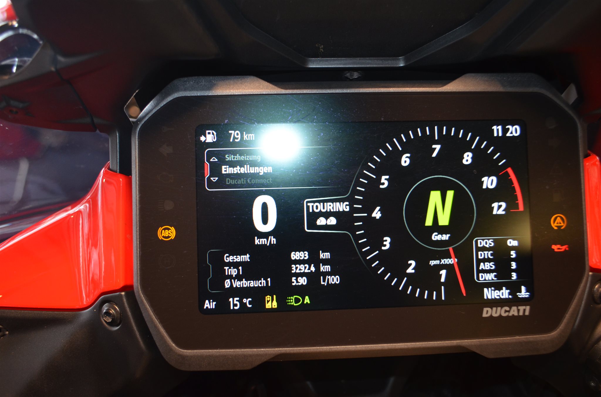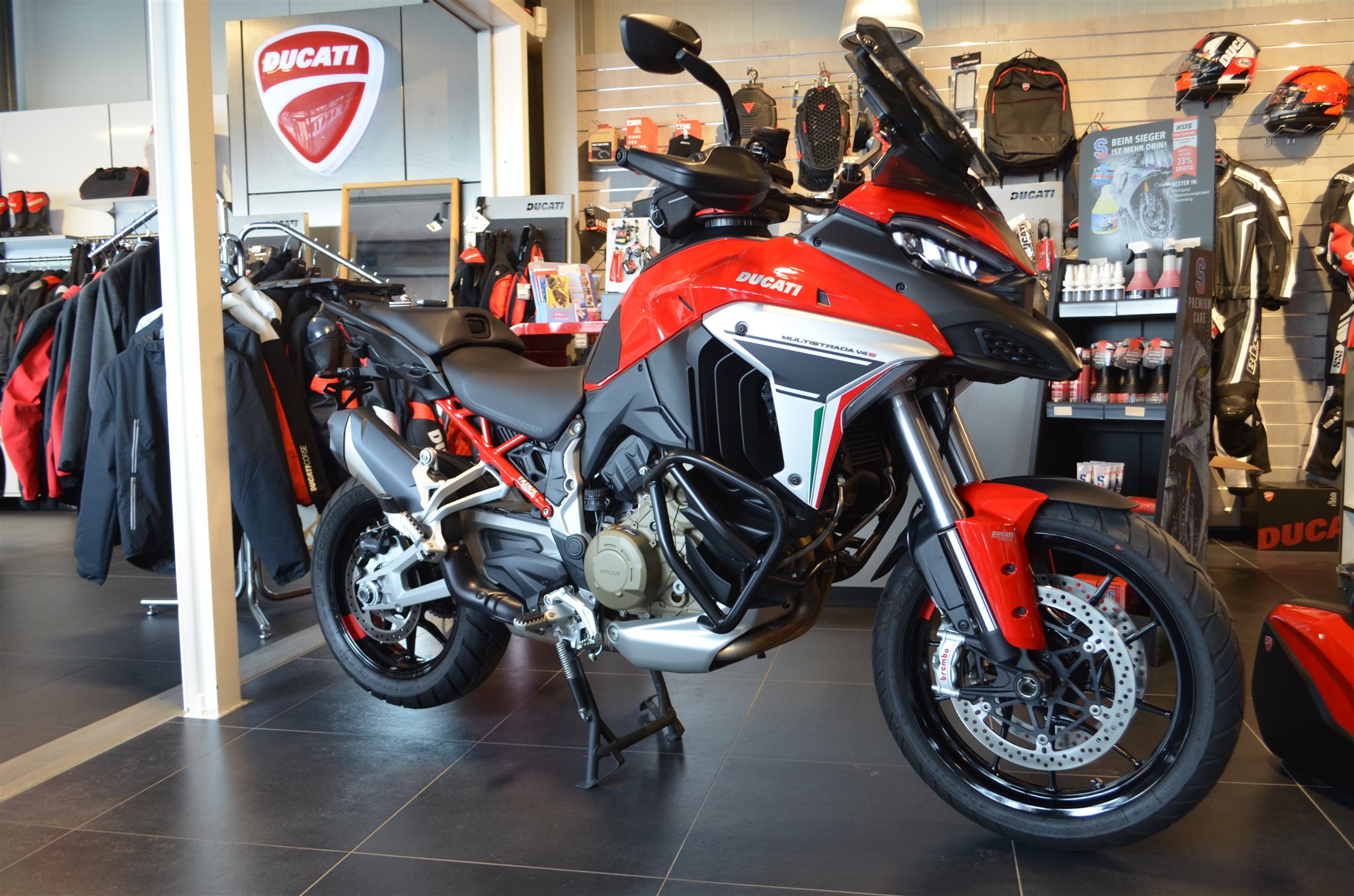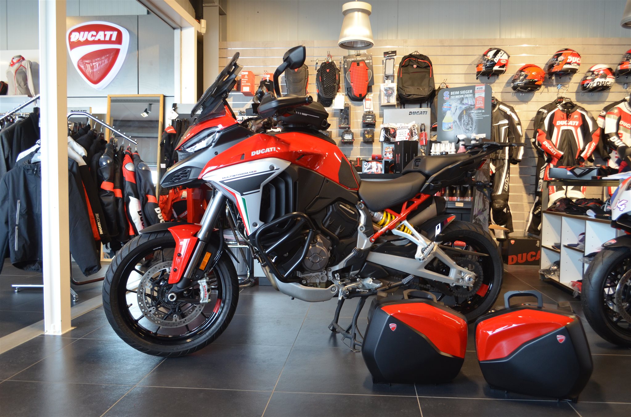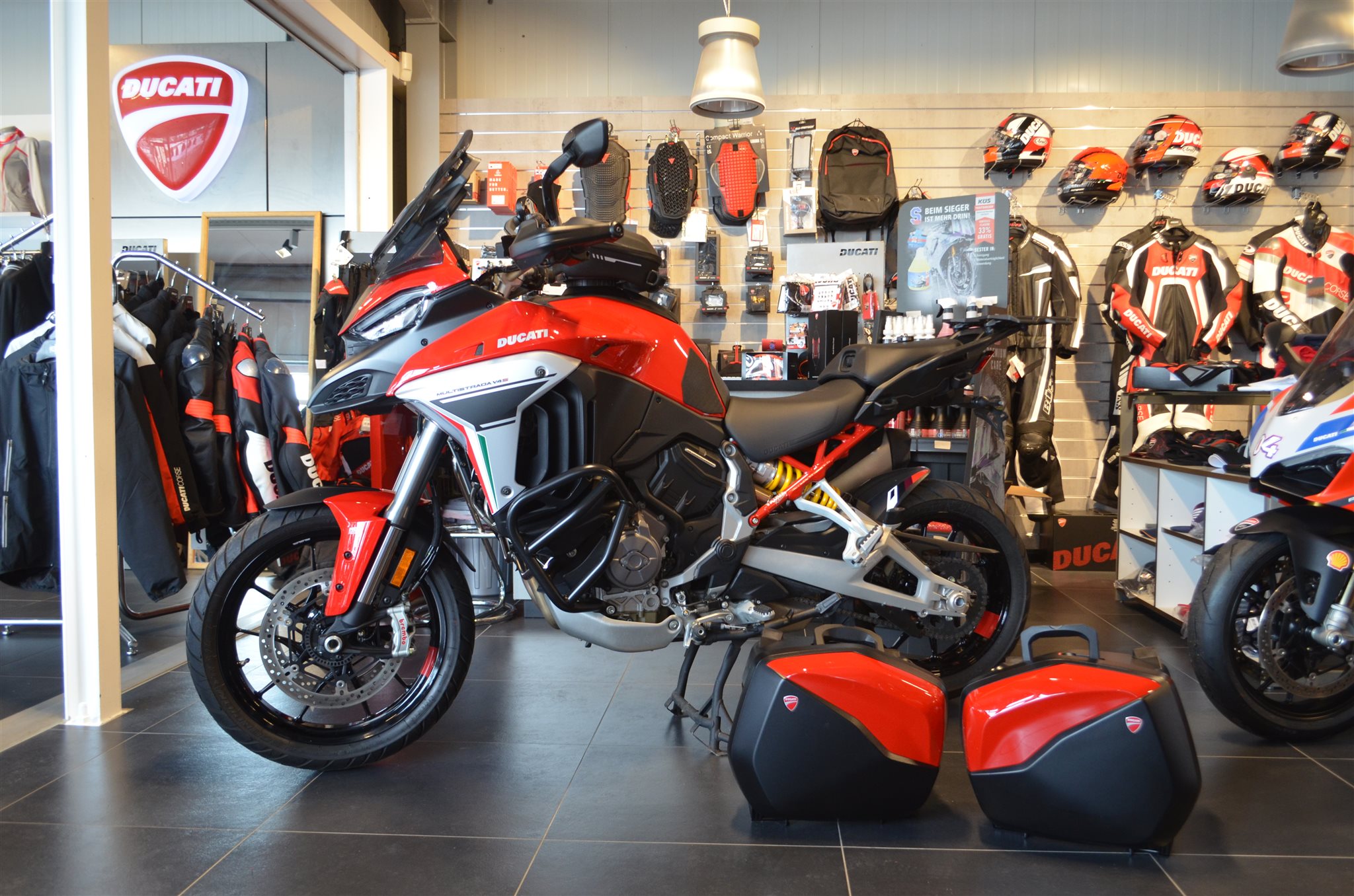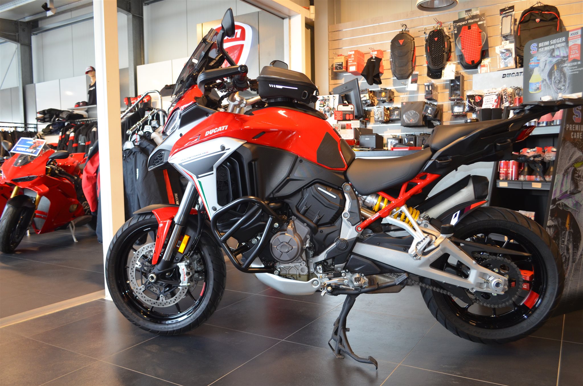 Wir haben hier eine schöne Multistrada V4S mit Travel und Radar reinbekommen.
